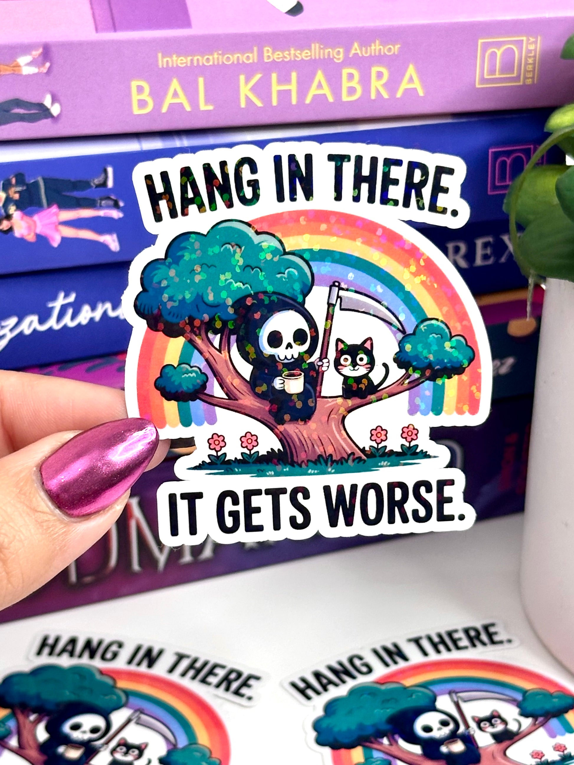 These laminated stickers feature a glittery protective finish that makes them water-resistant and extra durable. Perfect for decorating laptops, Kindles, iPads, notebooks, and water bottles.